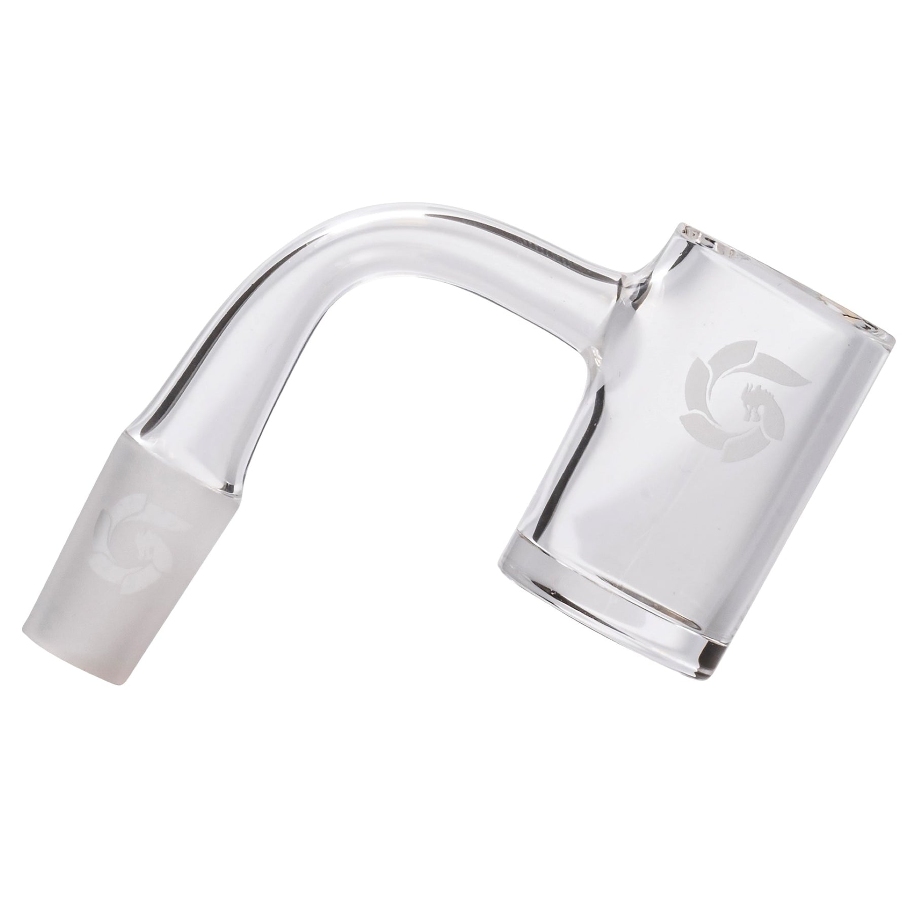 The Glasshouse Classic Flat Top Banger is known for its heavy airflow and versatility for hot or cold start dabs. This quartz set has a large flat top banger with a 14mm Male joint that fits female joints and a 90-degree joint angle to pair with oil rigs that also have a 90-degree joint connection. It includes two terp pearls that spin with each rip to evenly vaporize your wax concentrates. The large UV marble works with the terp pearls to disrupt airflow and evenly vaporize your concentrates.