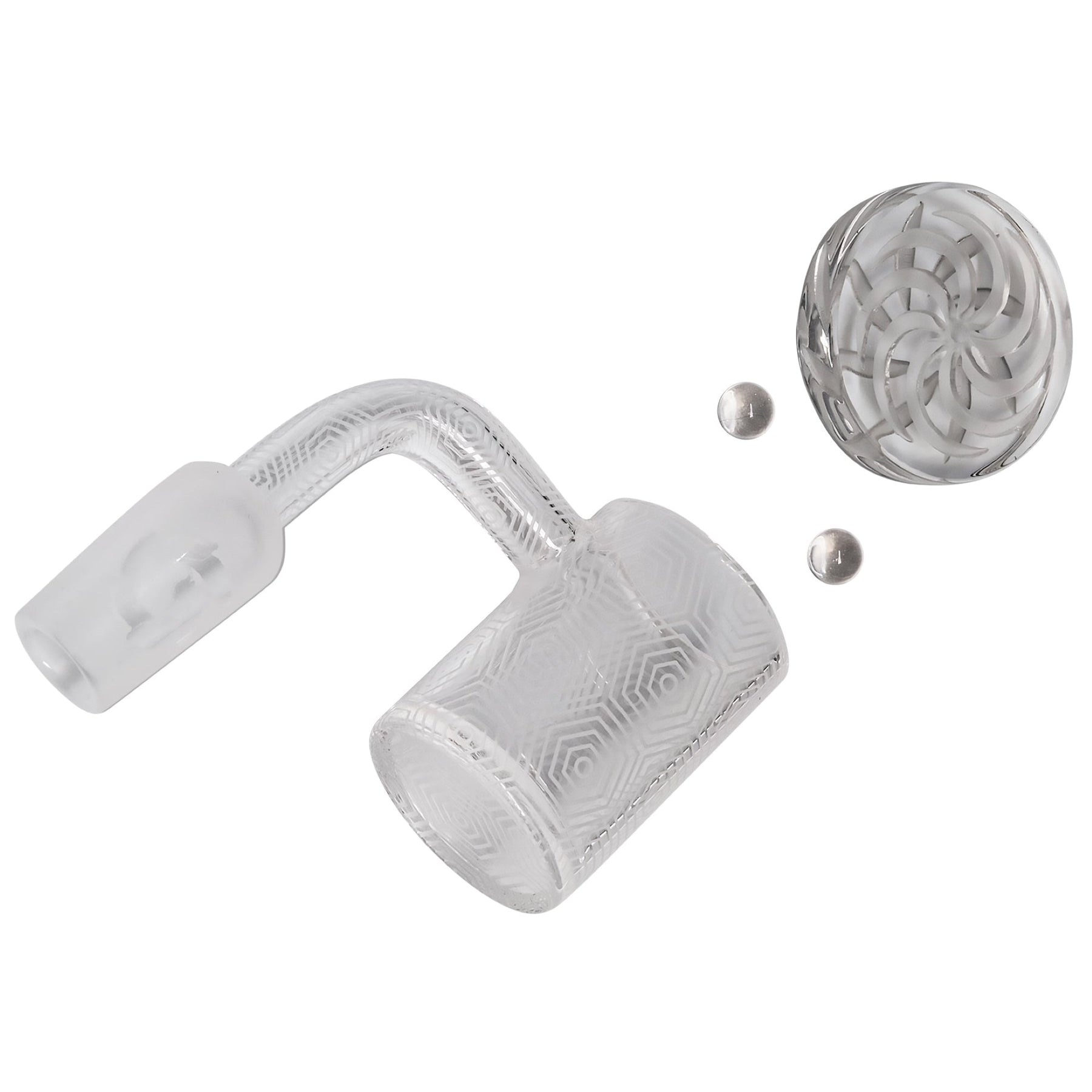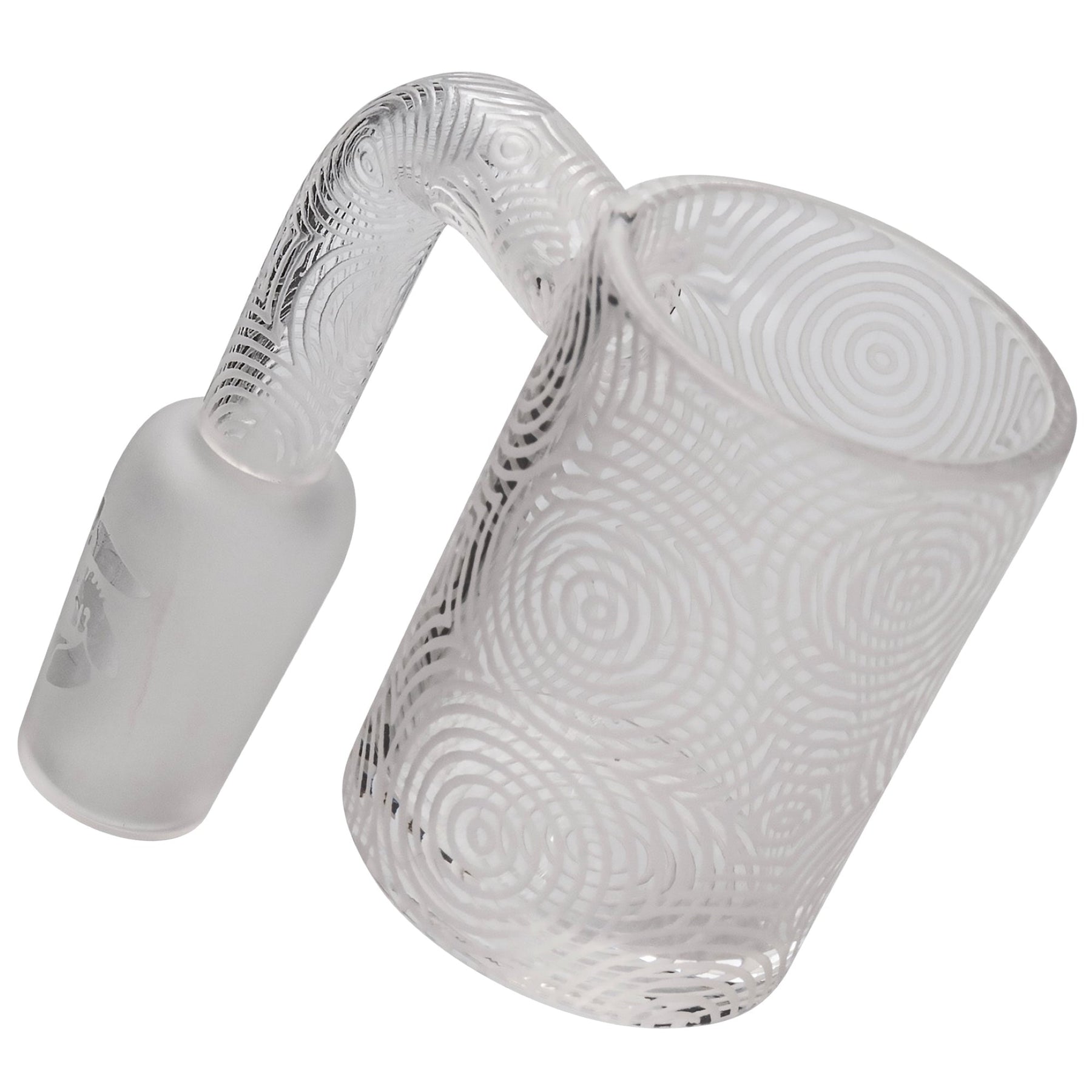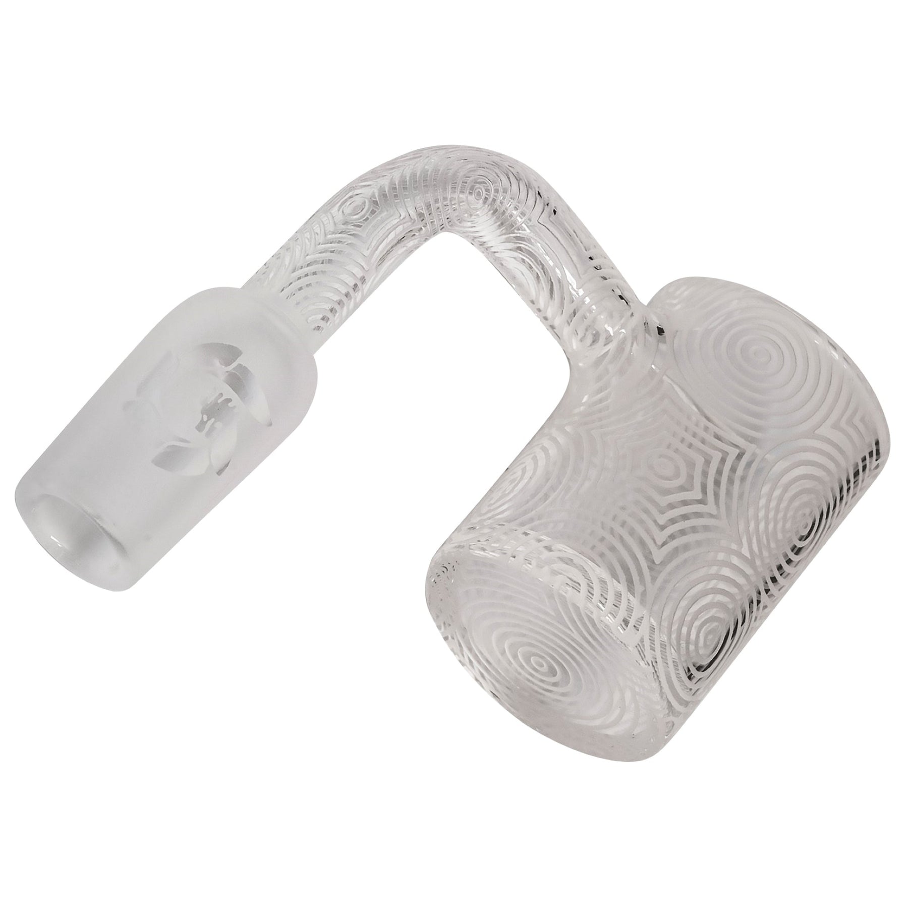 Blow your mind while blowing thick dab rips with the Glasshouse Trippy Etched Bangers. These flat-top quartz bangers come in five different patterns with each as mesmerizing as the next. All styles have a 14mm Male joint which fits a female joint and a 90-degree joint angle to pair with oil rigs that also have a 90-degree joint connection. The Trippy Etched Bangers come with a flat top spiral engraved carb cap to control airflow when inhaling. They also come with two terp pearls that sit in the large bucket and spin your wax concentrates around for evenly vaporized hits. Get a banger featuring psychedelic patterns that are never boring with one of the Glasshouse Trippy Etched Bangers, today!