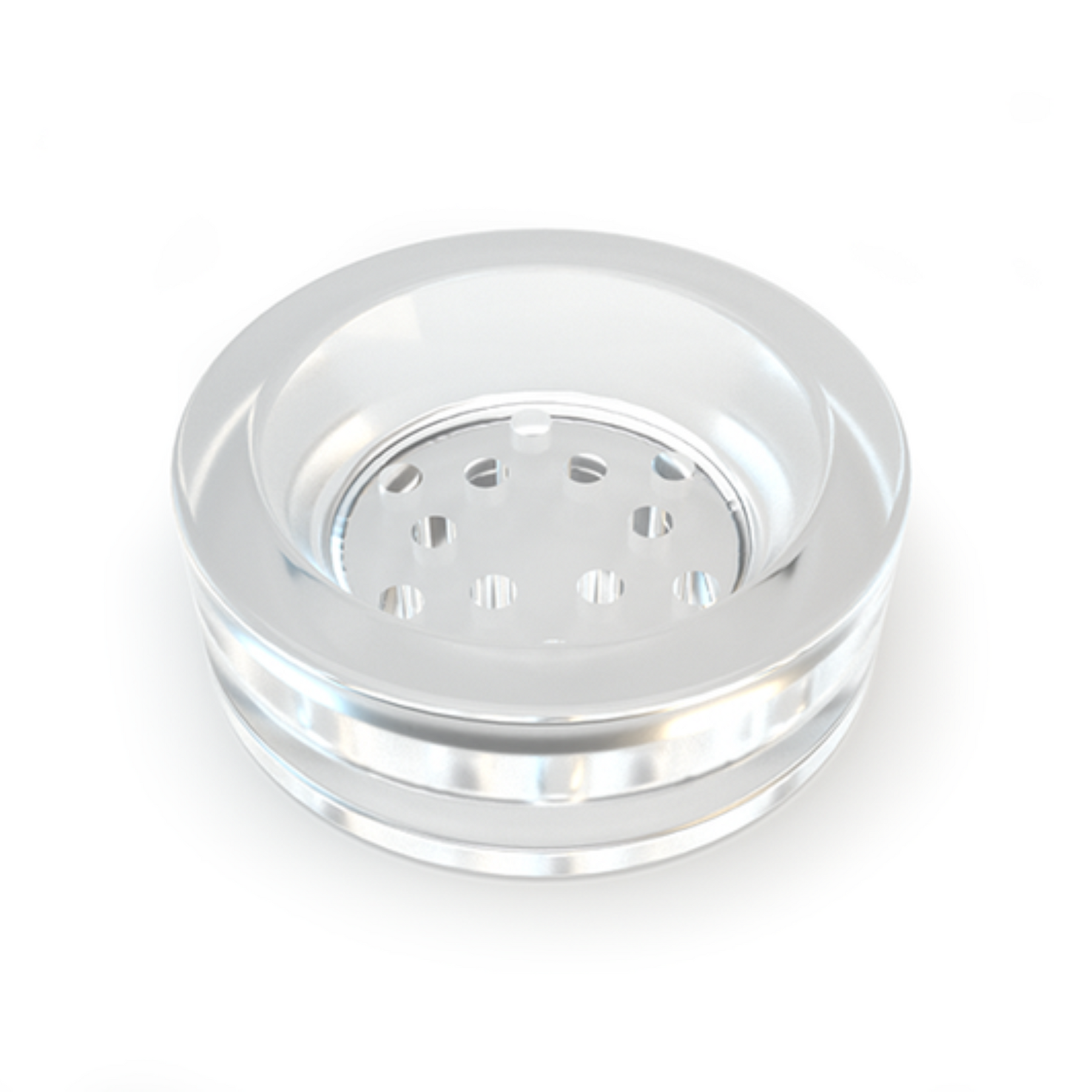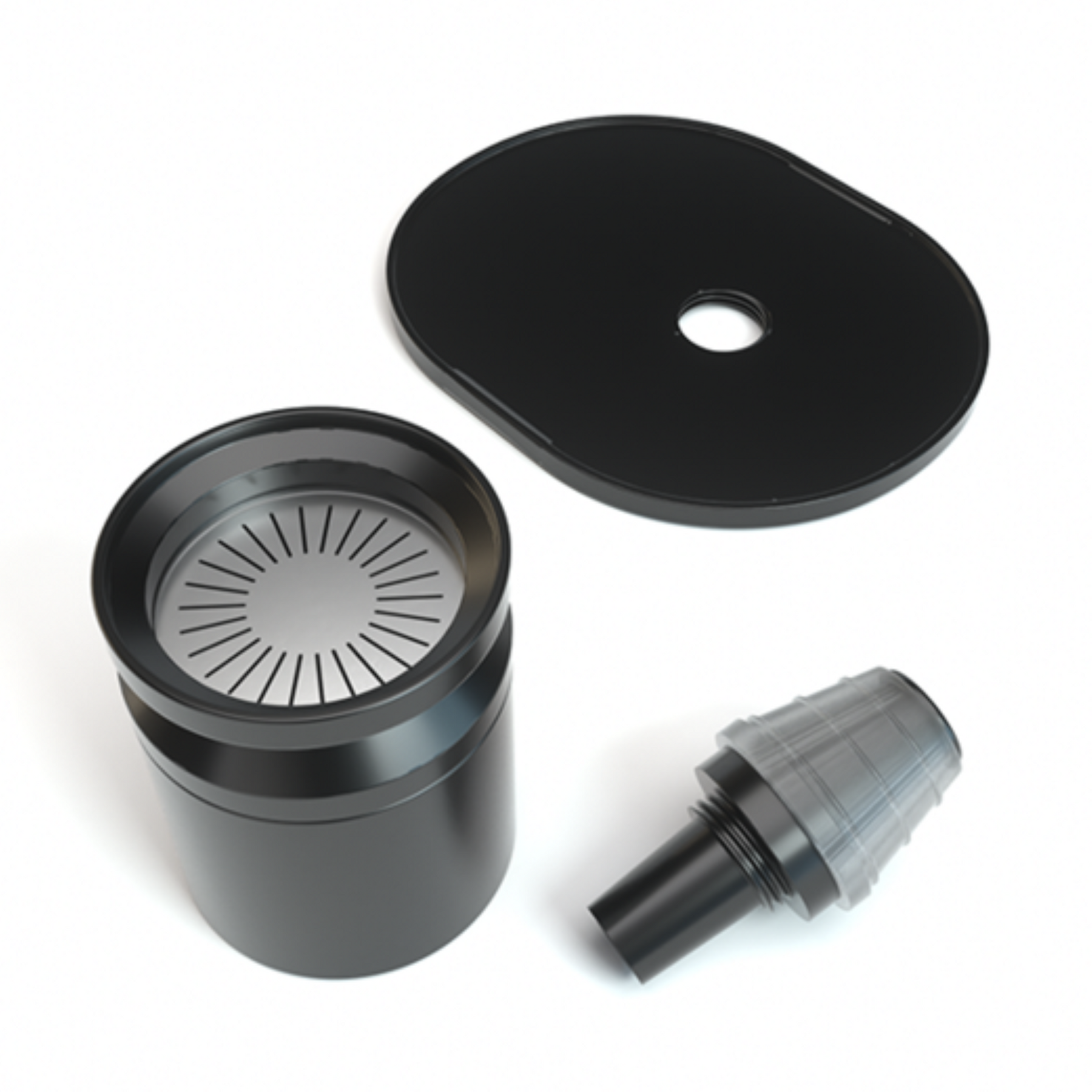 - Fill the bottom globe with water through the pass-through hole in the lid (fill to the edge of the unit, but do not overfill). Then wipe down the threads on the globe using a dry cloth.