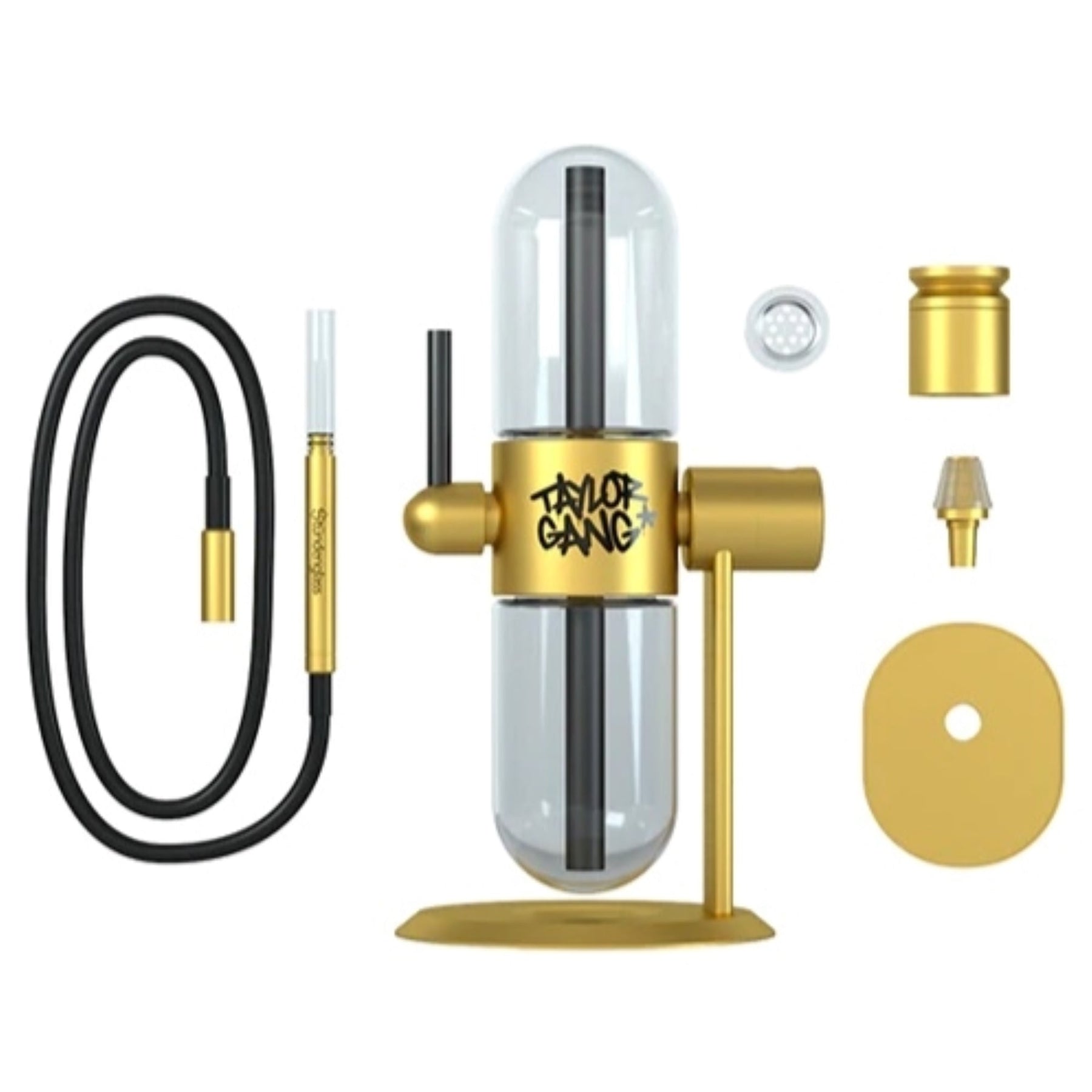 Regular price $599.95You know what it is, everything Stundenglass do, they do it big! Created in collaboration with legendary Pittsburg rapper Wiz Khalifa, Stundenglass is honored to introduce this fully customized Taylor Gang x Stundenglass Gravity Hookah Pipe. Decked out from top to bottom in gold and black, this limited-edition release is visually stunning and revolutionary in functionality like the original Stundenglass. The Taylor Gang Stundenglass Gravity Bong has taken the original design to a legendary level, featuring black street art decals chosen by Wiz Khalifa and matching accessories that elevate this water pipe far beyond a display-worthy centerpiece.