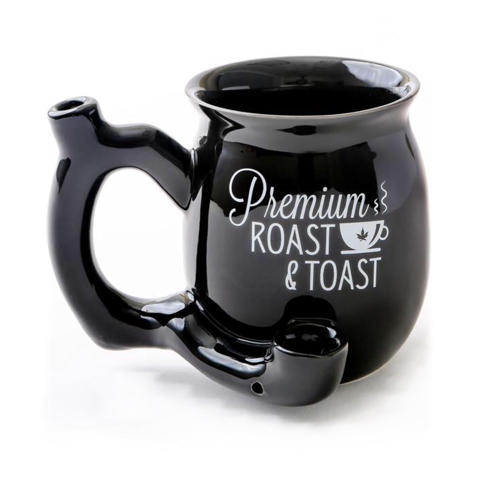 Part of a balanced breakfast of champions, the Roast & Toast Coffee Mug Pipe is guaranteed to get you going in the morning. The smaller version pipe mug from the originators at Premium Roast & Toast, this mug has an 11oz volume that is the perfect size for a spot of tea (with a hint of tree!). Unlike its larger double-walled counterpart with an internal air path, the built-in mouthpiece handle continues down the side and front of the mug to create a small spoon-style flower bowl on the front. A built-in air carb just below the bowl gives you full control over the size of each morning rip, while the fully ceramic design makes this hand pipe completely dishwasher & microwave safe just like any other mug! Choose your favorite color and enjoy the smaller, more portable version of the original pipe mug from Premium Roast & Toast.
