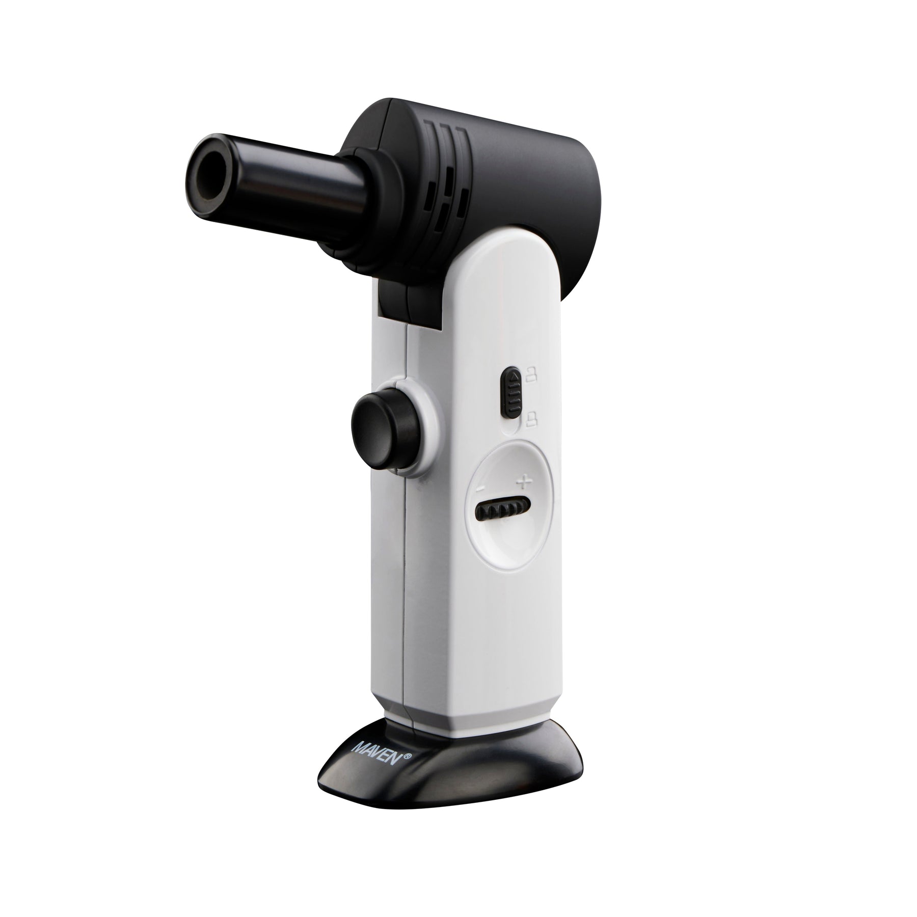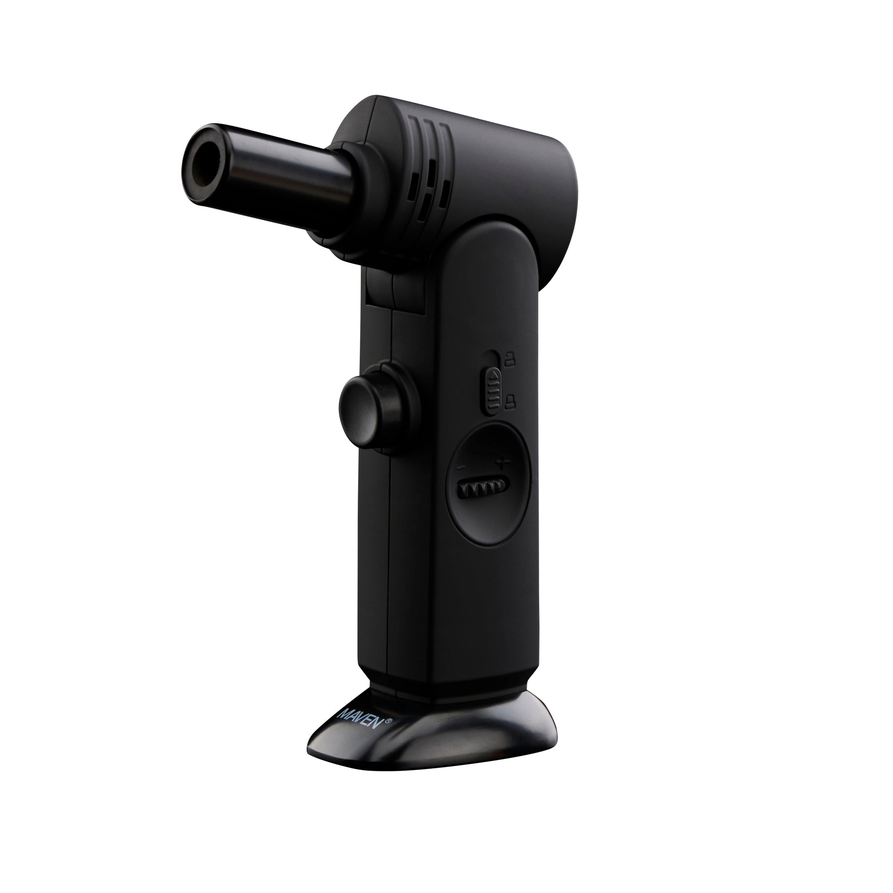 The Alter is a versatile dab torch with an adjustable head that allows for precise lighting. The nozzle can be effortlessly adjusted 90 degrees up or 45 degrees down, making it easy to direct the flame where it is needed. The stable base and conveniently located ignition button in the center enhance its usability, making it a great tool for dabbing. The Alter features a single windproof jet flame and an adjustable flame, providing flexibility in lighting intensity. It also has a safety lock and ignition hold for added safety. This butane refillable torch lighter is made of zinc alloy and stainless steel with a plastic finish.