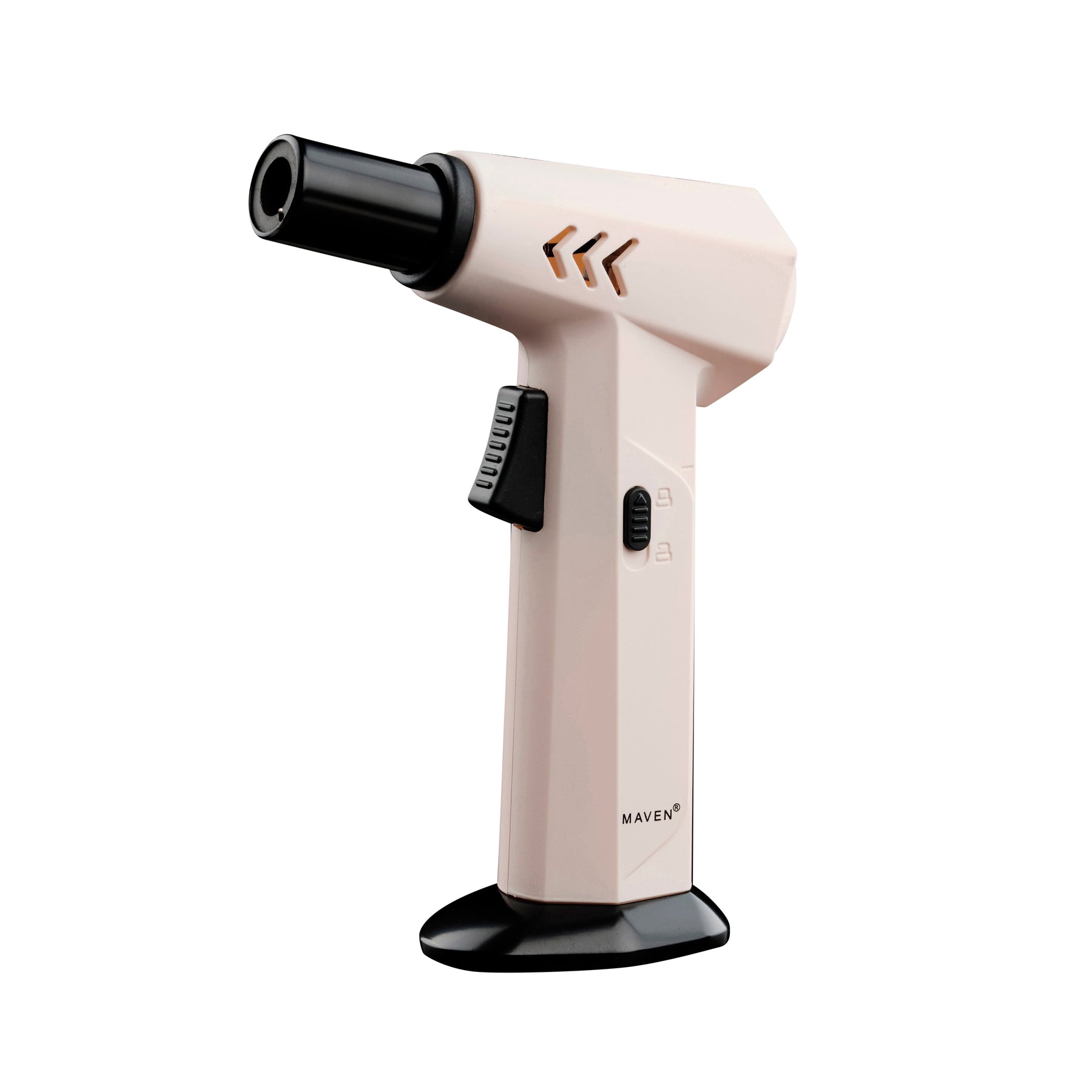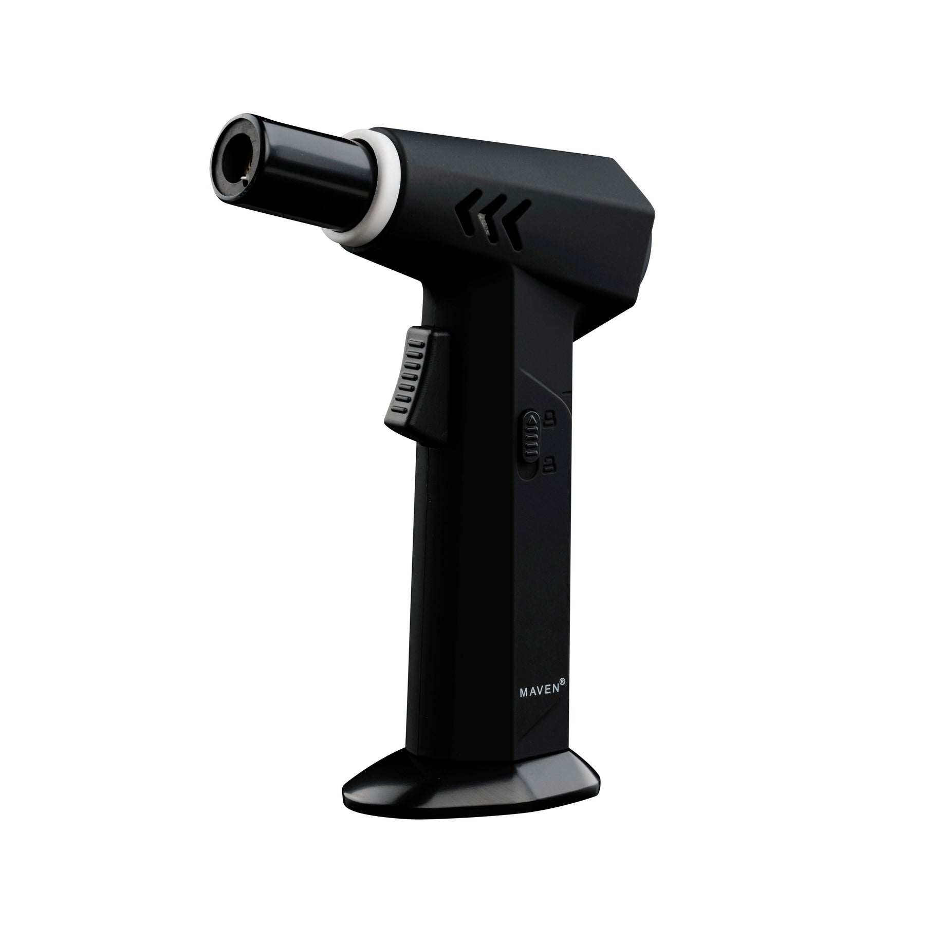 The Maven Hurricane Dab Torch is praised for its comfortable grip and strong ignition button. It features an adjustment wheel to increase or decrease the flame intensity, as well as a safety lock and unlock button for secure storage. This torch lighter is ideal for heating your banger before dabbing. It has a single windproof jet flame and an adjustable flame. The lighter is made of zinc alloy with a plastic finish.