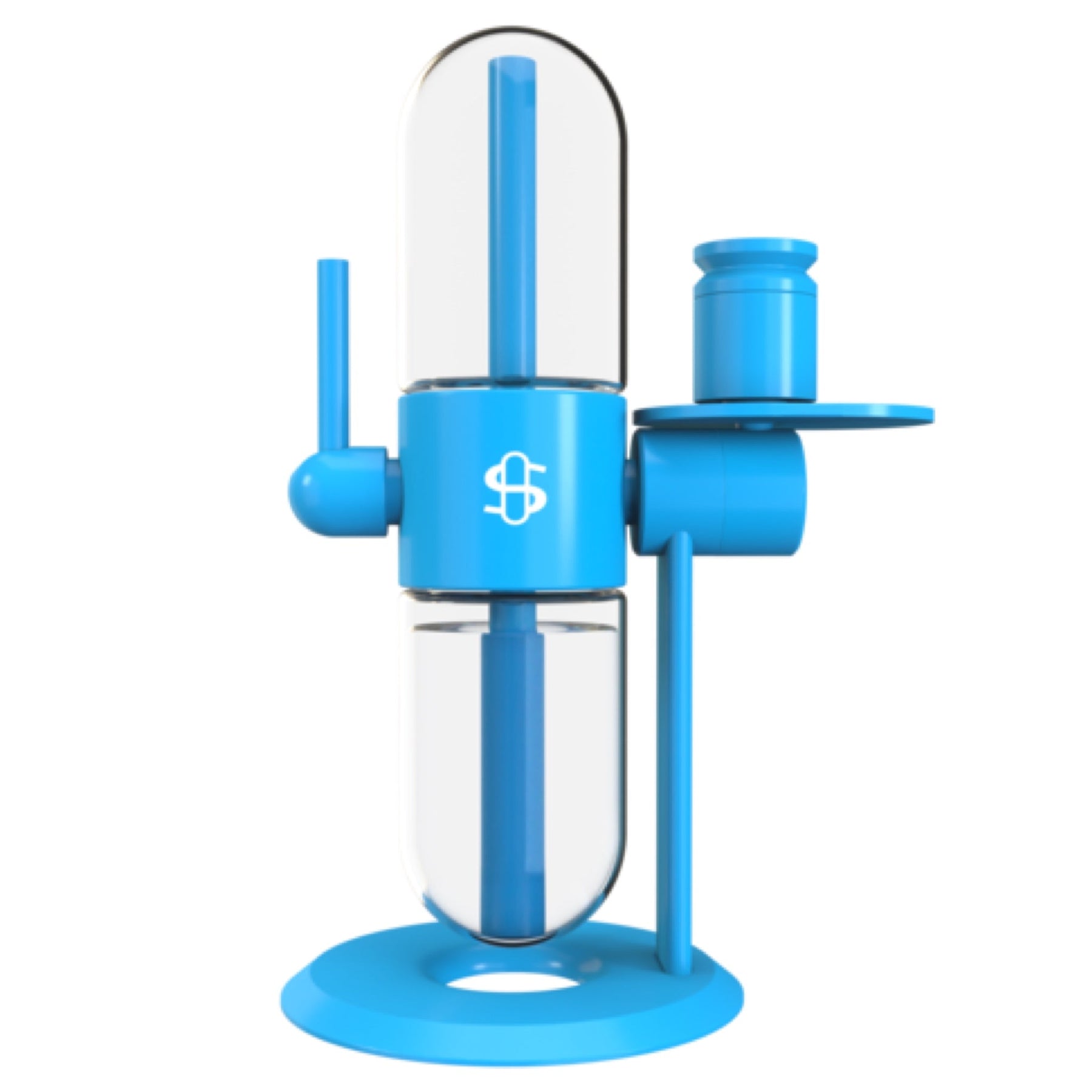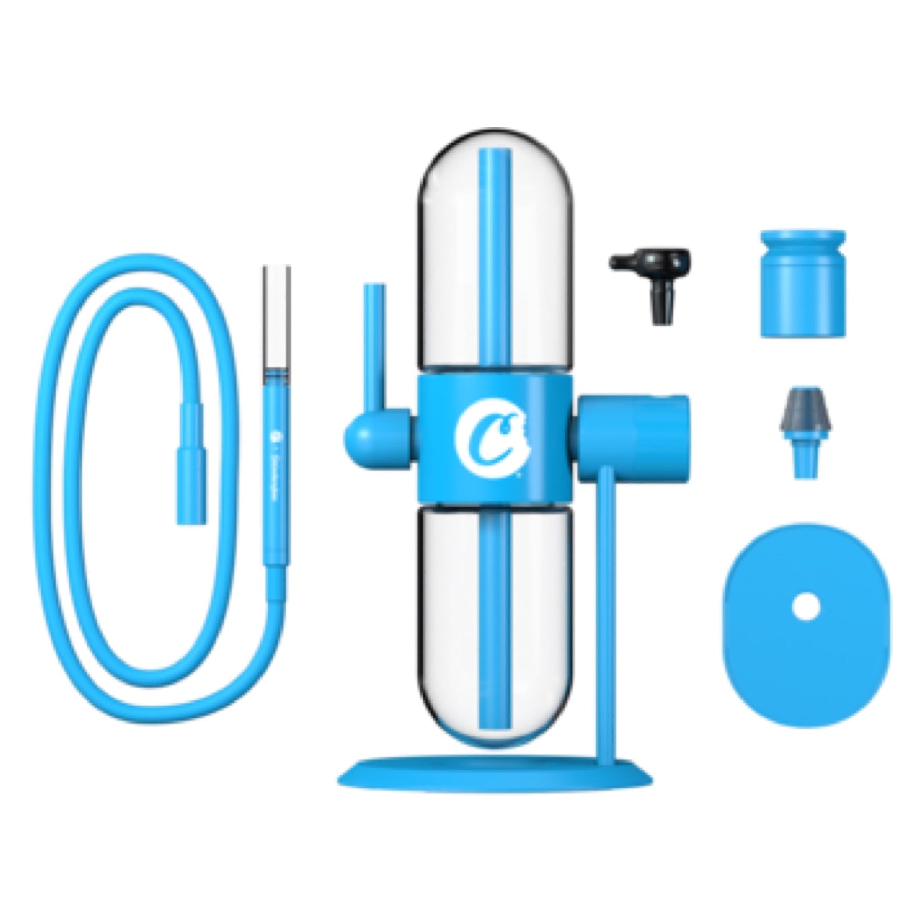 The Cookies Stundenglass Gravity Pipe was built with durability in mind, made with anodized aircraft-grade aluminum, surgical grade stainless steel, and high-quality Teflon seals. The pill-shaped globes smoothly flip in either direction without tangling the included accessories for a simple and easy-to-use pipe that will last you a lifetime. It will arrive completely ready to go, including the patented metal stand, 2 clear glass globes, dry herb bowl, hookah bowl, coal tray, and hookah hose. Get your hands on one of these limited edition gravity bongs in Cookies blue and start smoking the one & only Stundenglass Gravity Bong!