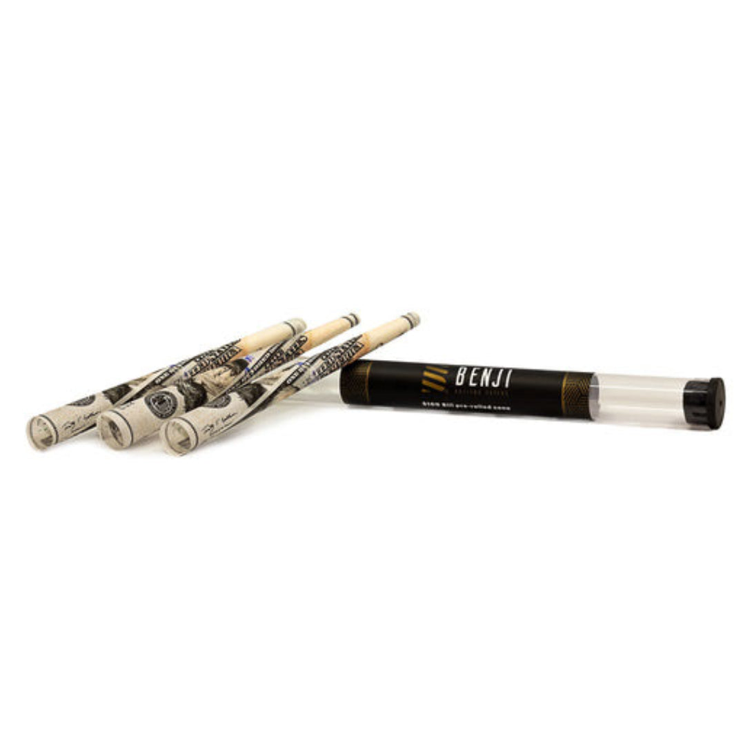 Flaunt your excessive lifestyle choices with these unheard-of $100 Bill-themed pre-rolled cones from Benji. These high-quality cones are made possible with all-natural, non-toxic vegetable oil coloring and, aside from size, are practically identical to real $100 notes! Grind up your favorite dry herbs, fill up your cone, and you’re ready to pass the Benji!