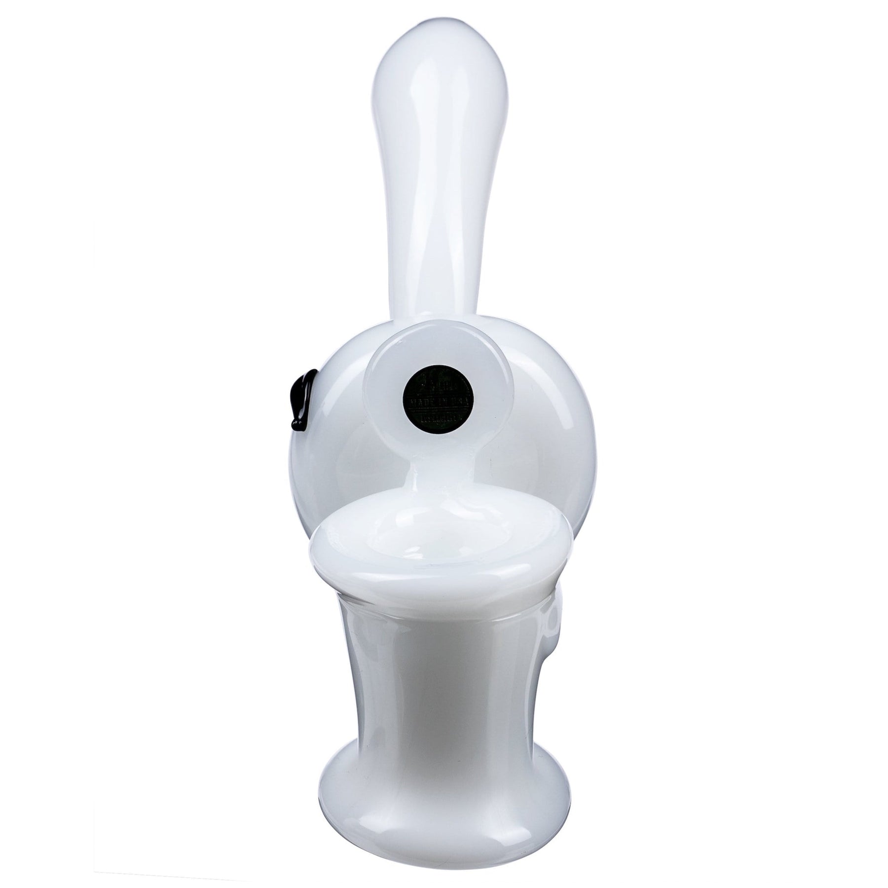 Flush away your smoking worries with this m-ASS-terpiece from LA pipes! Unlike the porcelain bowl you spend many hours on, this Toilet themed hand pipe from LA Pipes is made of quality borosilicate glass molded to resemble your bathroom throne. This novelty sherlock pipe is made for simplicity as it sits flat on surfaces at 4” inches tall and features a carb on the side for controlled airflow. It also comes in the classic white porcelain color with a black handle to create a life-like replica. Instead of sitting, you’ll do your best thinking while smoking the LA Pipes Toilet Bowl Glass Hand Pipe!