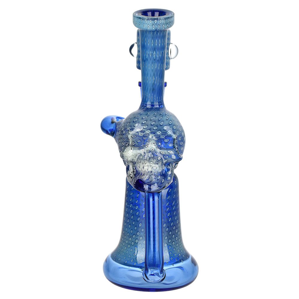 The skull-shaped upper chamber, where the tubes converge, gives this bong a delightfully spooky finish, perfect for those who appreciate a touch of the macabre. Included with each bong is a matching bubble matrix 14mm male herb slide, complementing the overall design. Available in multiple color options, the Pulsar Cerebral Bubble Matrix Recycler Bong is a striking choice for anyone looking for a bong that combines unique design with high functionality.