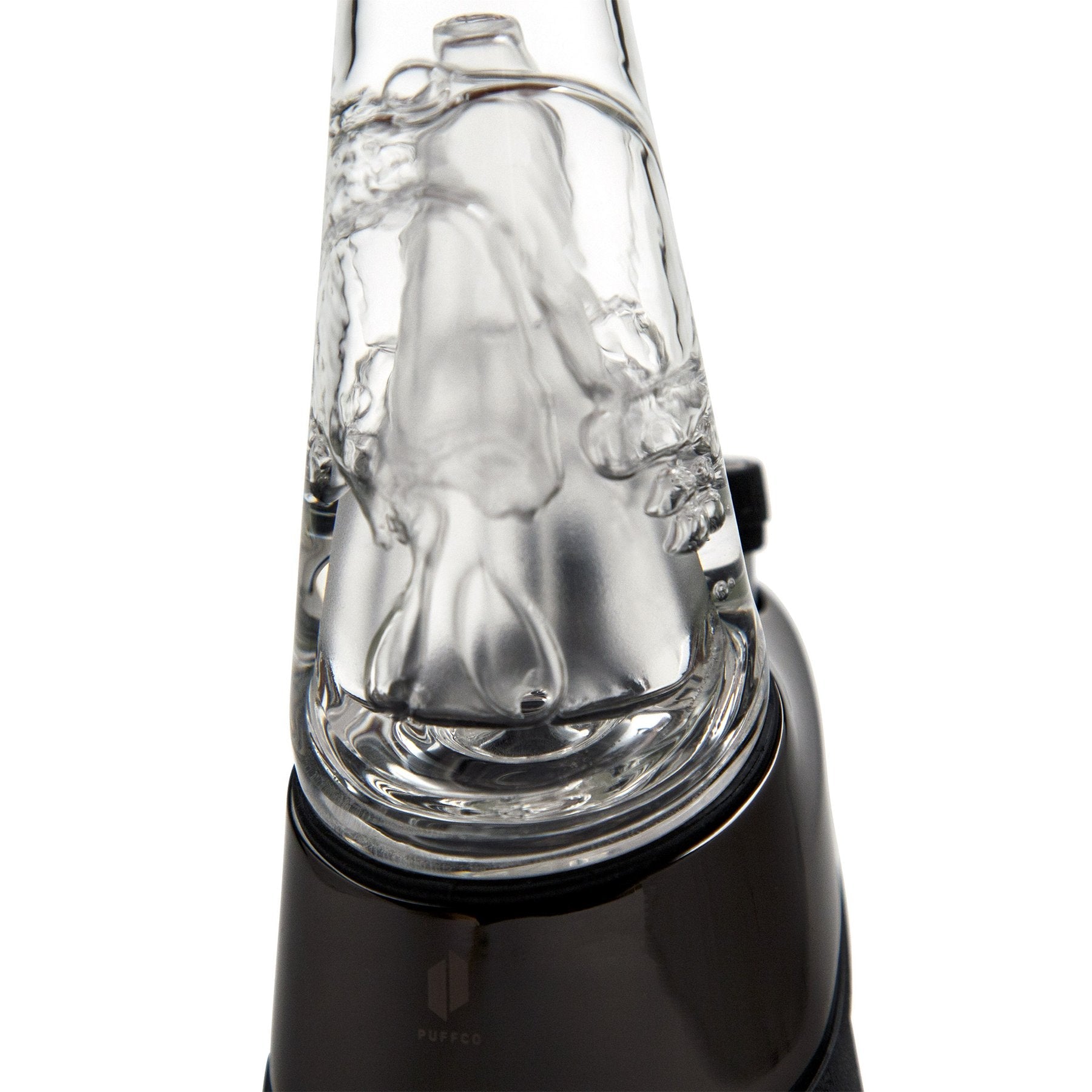 The Puffco Peak Smart Rig has a 20 second average heat up time and comes pre-set with 4 color-coded temperature settings (450°F, 500°F, 550°F, and 600°F). Beginner or expert, small or big loads, flavor or big clouds, no matter how you like to consume your concentrates there is a perfect Peak setting for you. The glass chamber of the Puffco Peak is hand-blown with the highest quality glass and adds an extra element of water filtration to your dabs, while the sturdy silicone base can take a hit and won’t easily slip or tip over. The discreet light band provides colorful battery and heat cycle indicators when needed, and conceals itself when they're not. The smart haptic feedback will vibrate while engaging with the Puffco Peak at all times and works to ensure you get perfect, consistent hits.