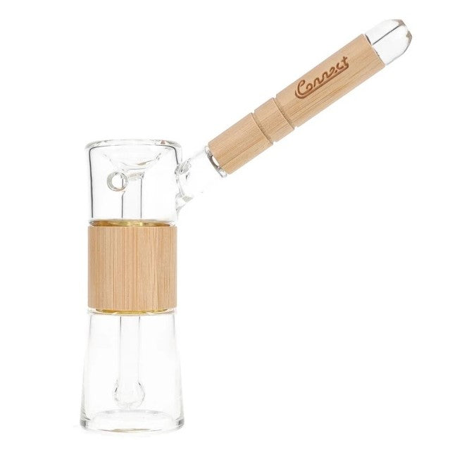 Elevate your smoke sessions with the Connect Wood Bubbler. This versatile bubbler serves both as a water pipe and dry pipe, offering varied experiences in one elegant piece. Enjoy potent smoke on the go without the need to fill it with water, or add water to the pipe when you're home for smoother, moisture-conditioned hits. The Connect Wood Bubbler comes with a large water chamber that ensures effective water filtration, while its globe-shaped percolator provides maximum purification. Featuring a distinctive design with removable parts, it's incredibly easy to disassemble and clean. Highlighted with three types of elegant wooden grips, the Connect Wood Bubbler is not only comfortable and ergonomic but also a stunning addition to your glass collection.