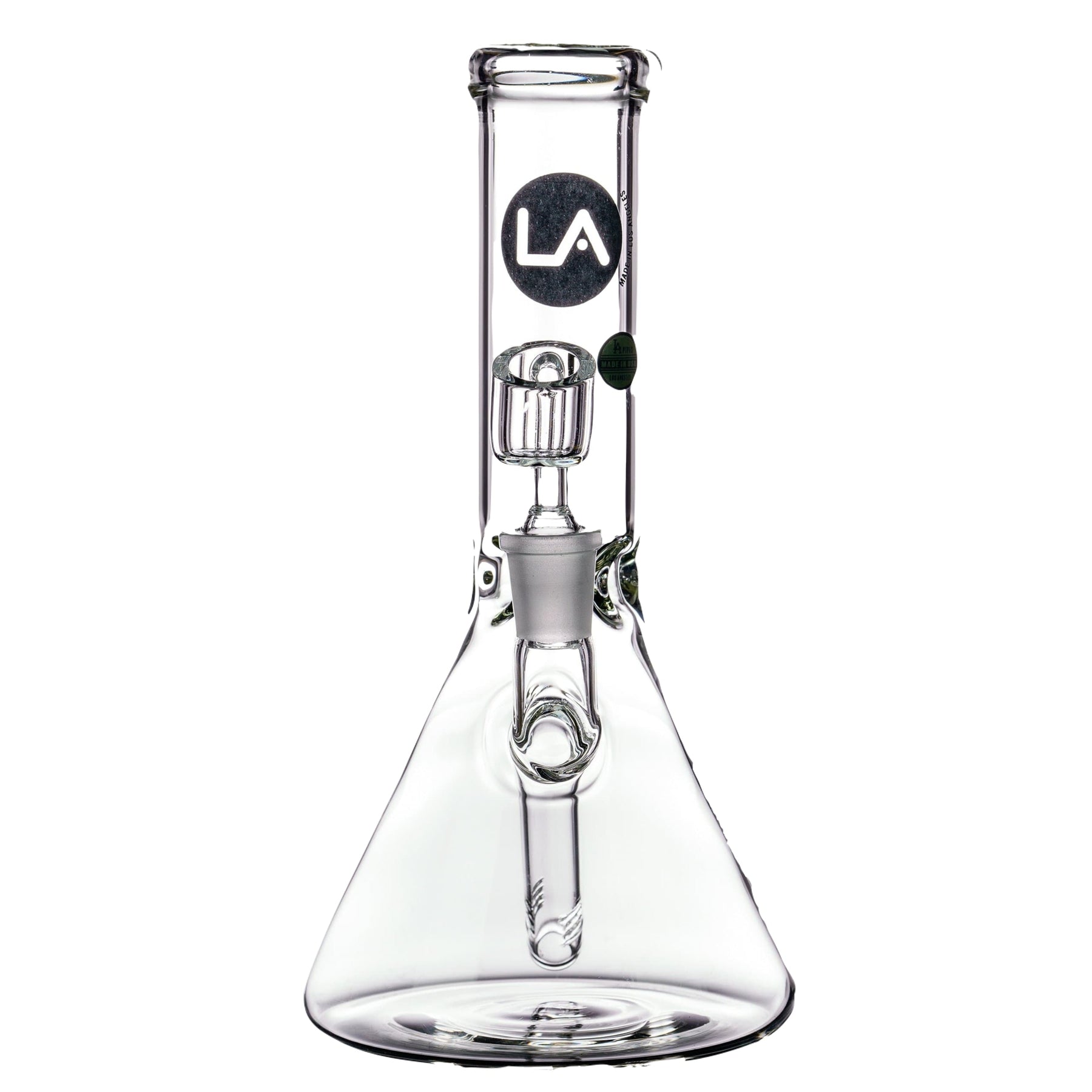 The LA Pipes Concentrate Beaker Rig offers smooth and tasty dabs from a design you can trust. This American-made glass dab rig features a classic beaker shape, which is rare for an oil rig but highly effective at producing large clouds from your favorite wax concentrates. The LA Pipes Concentrate Beaker Rig is handmade in California from thick borosilicate glass with 38mm heavy wall tubing that can survive the clumsiest of handlers. This piece stands a compact 8” inches tall and features a fixed downstem that makes it perfect for taking with you on the go.